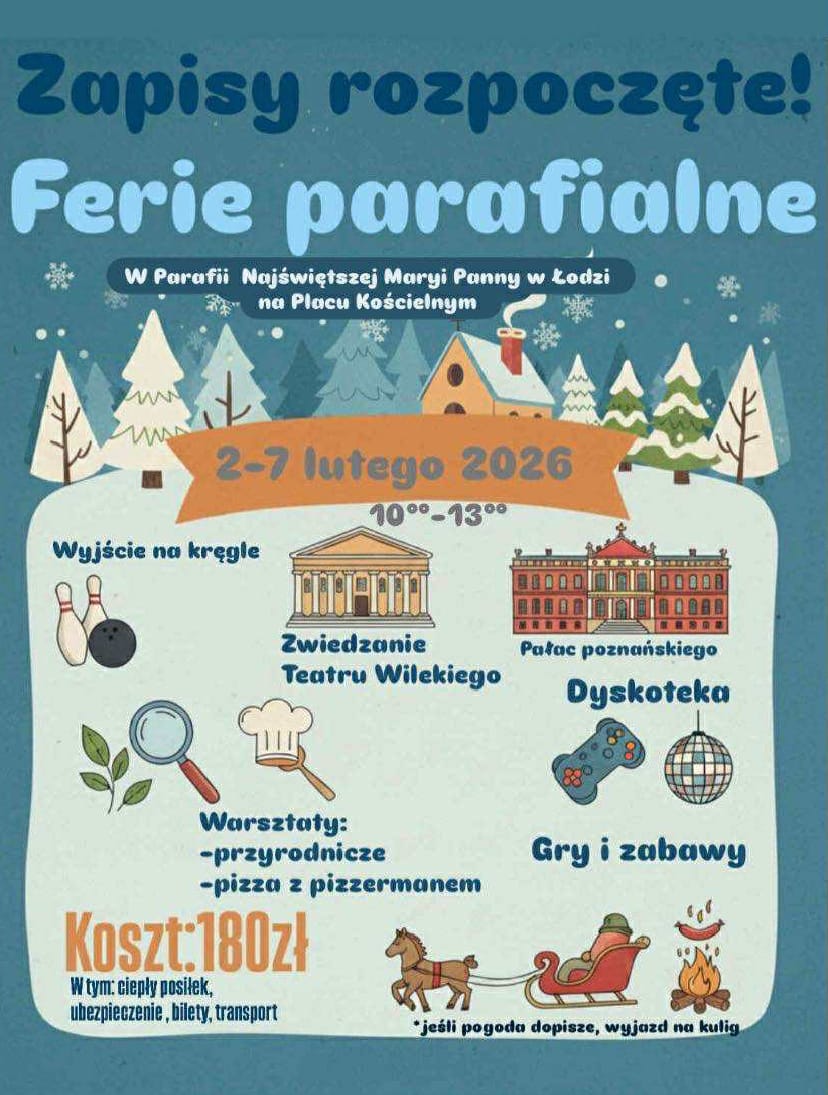 Zaproszenie na Ferie w Parafii ❄️